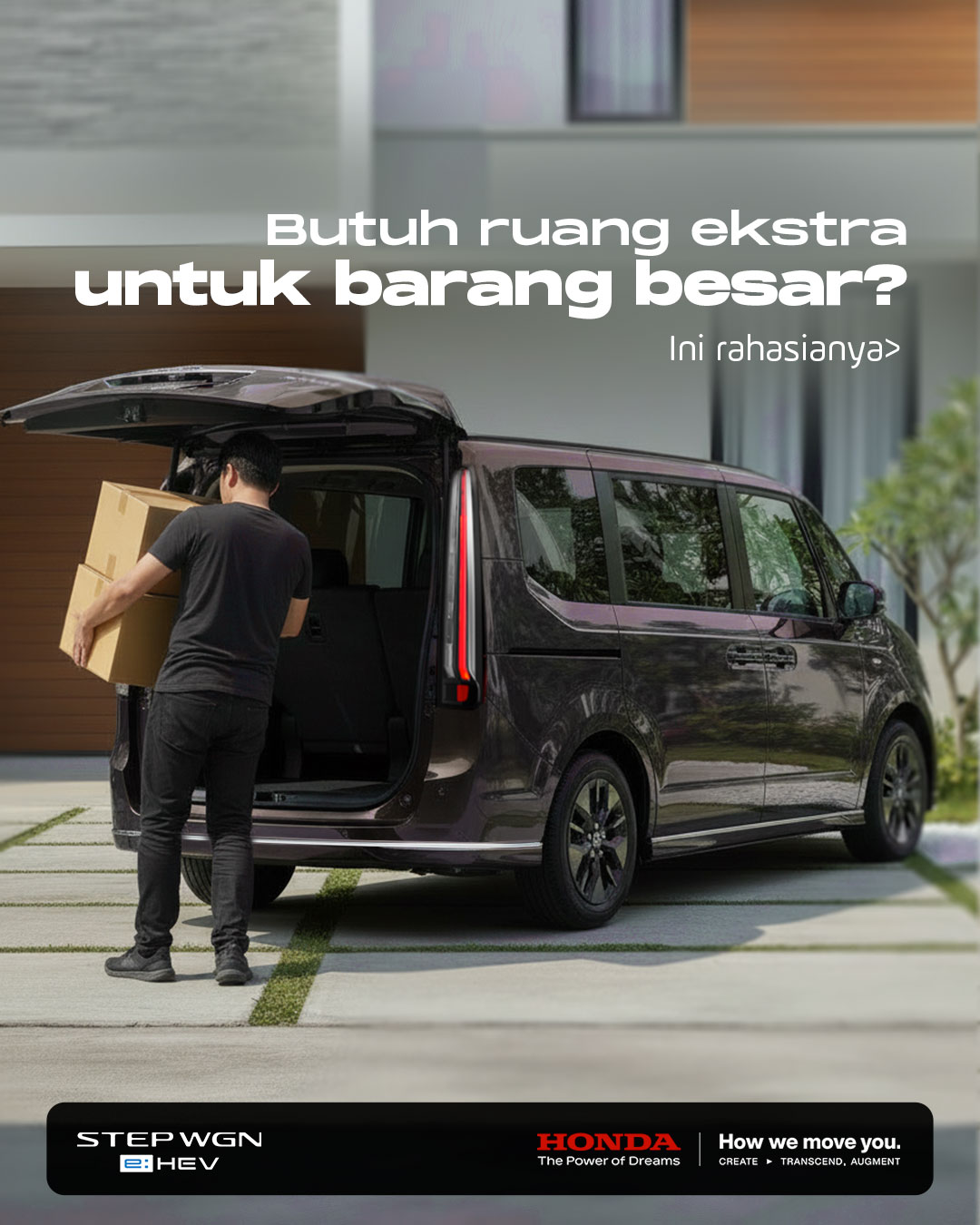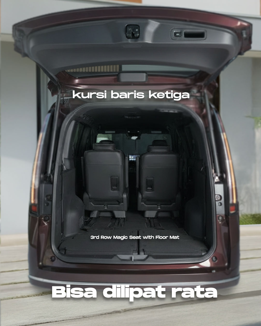Dengan 3rd Row Magic Seat, kursi baris ketiga di Honda STEP WGN e:HEV bisa dilipat rata, memberi ruang bagasi yang lebih luas dan fleksibel.