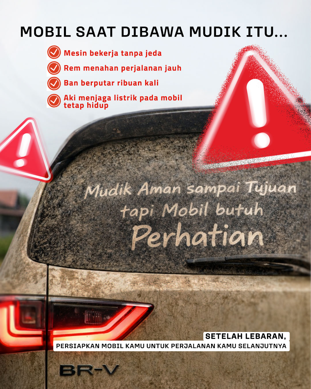 Setelah perjalanan jauh, pastikan kondisi mobil tetap prima supaya siap dipakai lagi.