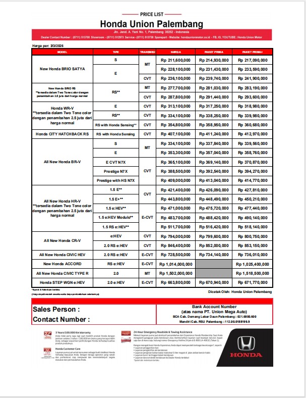 HONDA UNION PALEMBANG