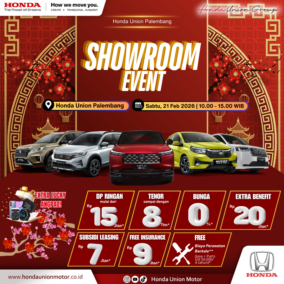 Spesial Bulan ini ada Promo Imlek, Honda Union Palembang mengadakan “Showroom Event” yang akan dilaksanakan pada :